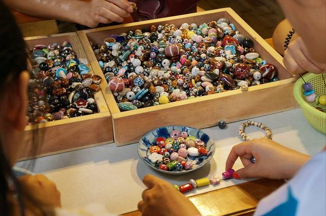 自己串珠子,一块钱一颗,串手链,还挺有意思