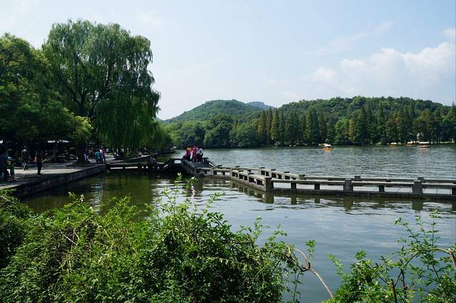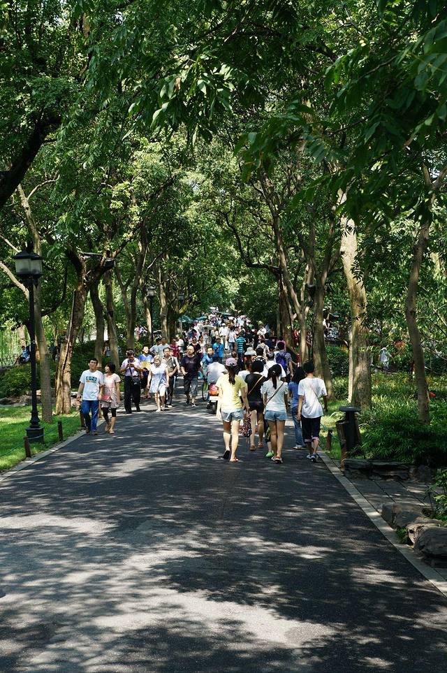 苏堤好长,骑车都觉得好长,但是两侧的树郁郁葱葱,遮住了阳光好清凉。因为终极目标是白堤上的楼外楼,所以一路并没有做过多停留,有一点可惜。其实应该反过来走,先去吃饭,然后再来苏堤把车停了走走看看,肯定更棒。因为白堤上的树没有这么遮阳啊泪TT
