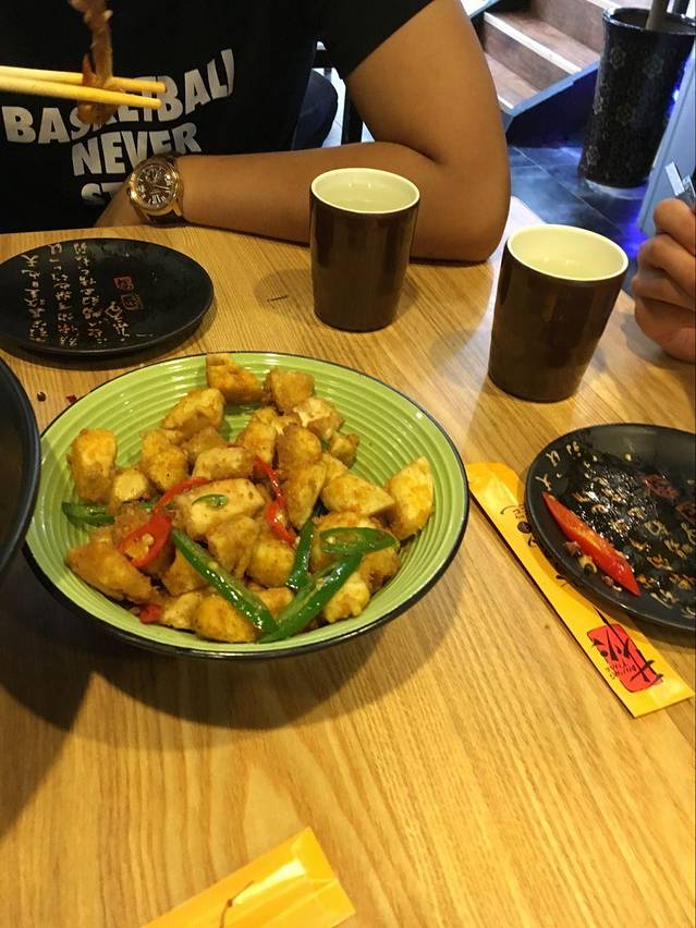 老公发小在大学城请吃香锅,这个炒馒头超级好吃,辣辣的