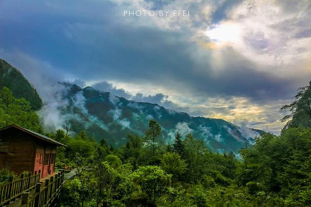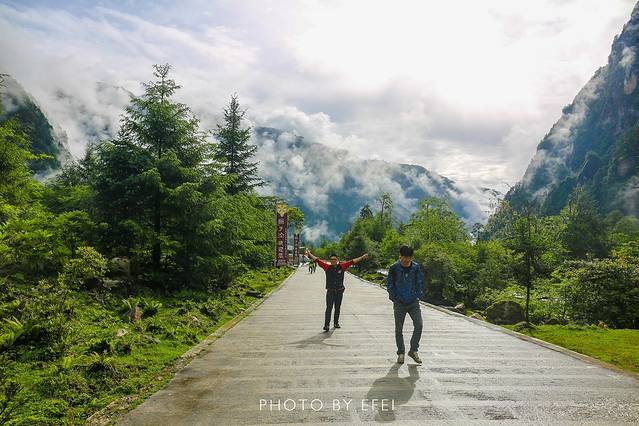 由于路上一路通畅,虽然天空中一直在下着大雨,我们的车子也顺利的在高速上腾云驾雾,3个小时左右,我们便顺利到达了泸定。由于天色还早,我们决定直接开到磨西古镇,然后第二天进燕子沟景区。