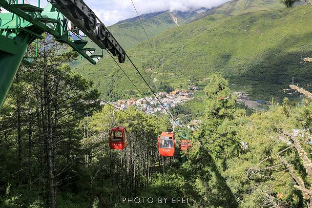 跑马山可以步行爬山上去,也可以做缆车,我们时间紧,所以果断选择了缆车上山,缆车一共要做15分钟左右,两人一个车,在缆车上可以俯瞰整个康定城区。
