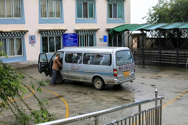 从磨西古镇到燕子沟,只用了不到半个小时的时间,就到了门票口。自己的车子是不能开上去的,必须购买景点大巴车,好吧,其实就是一辆面包车啦。景区工作人员说,8点半才会有师傅来开车。估计我们就是第一批进沟的游客了。