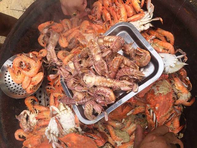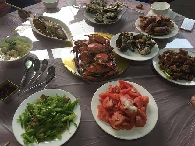 每人每天吃饭家住宿150元,看照片,看看我们吃的什么,打电话这个地方竞争也激烈,有130、120、100元每天的,吃的死海鲜,死螃蟹,大家注意千万别贪小便宜吃大亏啊!!