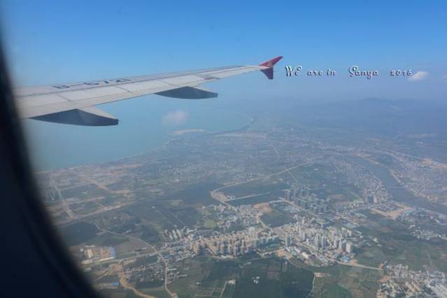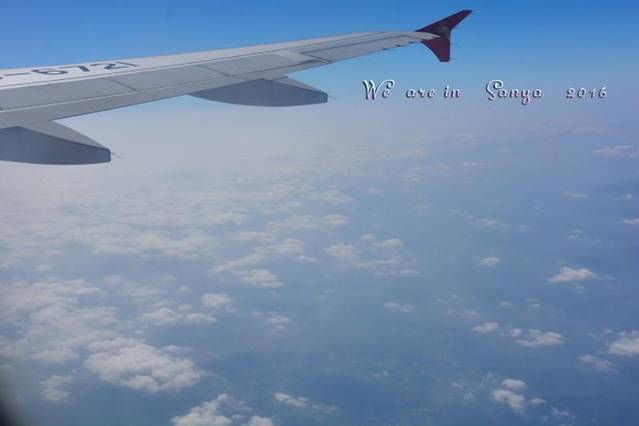 ^在飞机下看到蓝天、白去,哈哈,三亚,我们来了。