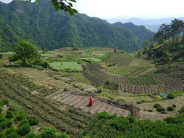 路过的都是依山开垦的农田、茶田