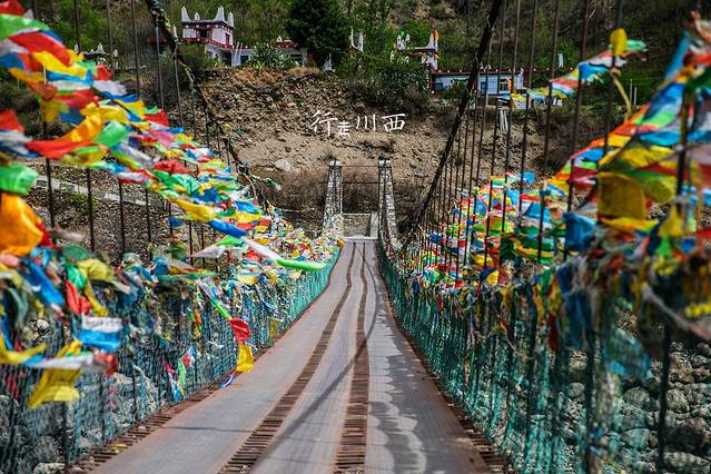 途经扎科村一铁索桥,桥上经幡缠绕,迎风飞舞,很是好看。