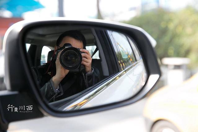 由于米粥从某旅游网申请到了试驾用车,所以我们省去了租车的麻烦事儿,第一天,兴奋地从成都出发了。出发前,对着右侧镜嘚瑟来一张。