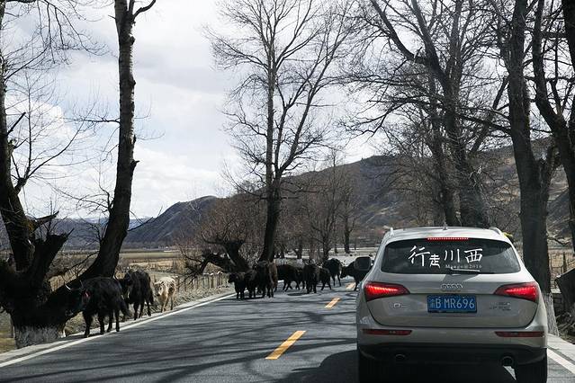 新都桥离塔公镇不到半小时的路程,一路开过去,只见公路坦途,公路两边杨树相拥,遗憾的是,我没能看到什么激动的风景,给车加满油后,我们短暂停留后便开车返回了塔公镇。