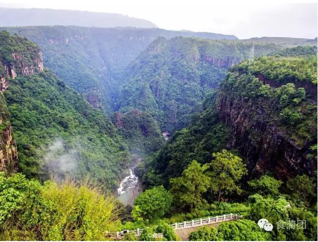 一路翻山越岭,车窗外不断闪过辽阔坦荡的田野平川、藏于山水间的村落,还有,远方若隐若现的绵延群山,友人数度举起相机,都因颠簸而放弃。两个半小时左右,刚好是午餐时间,到达大峡谷景区内的丽宫果园度假酒店。