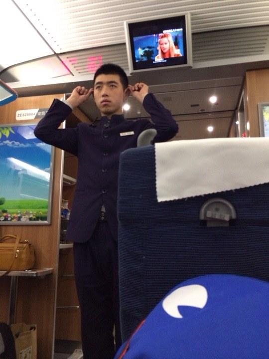 高铁上的乘务员小哥在教什么操我已经忘记了。。。