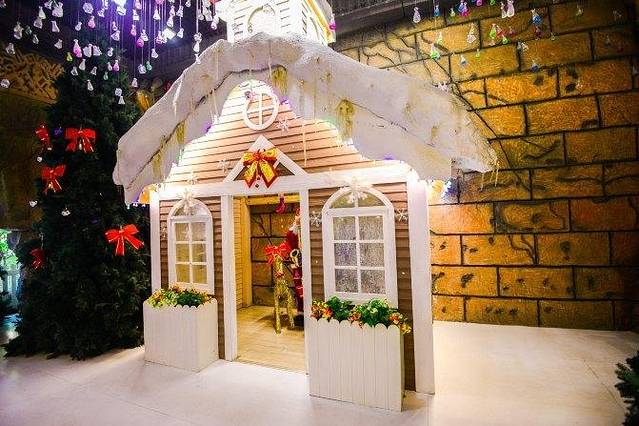 北欧乡村小镇通过暗藏的LED灯的设计、乡村风情小木屋、雪松营造童话风情,打造永不落幕的圣诞节,让人感觉很舒适。