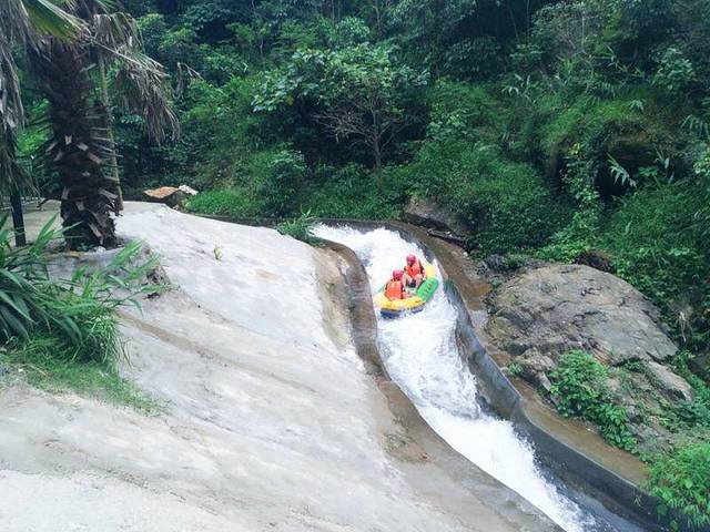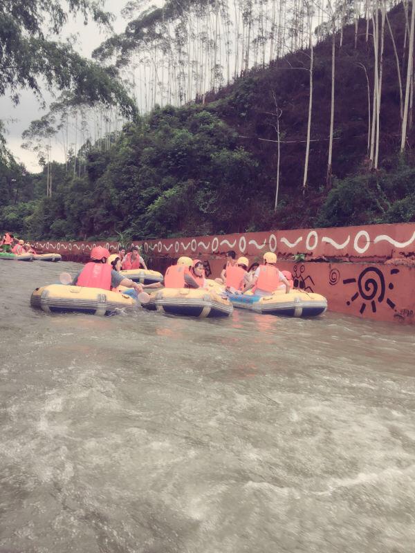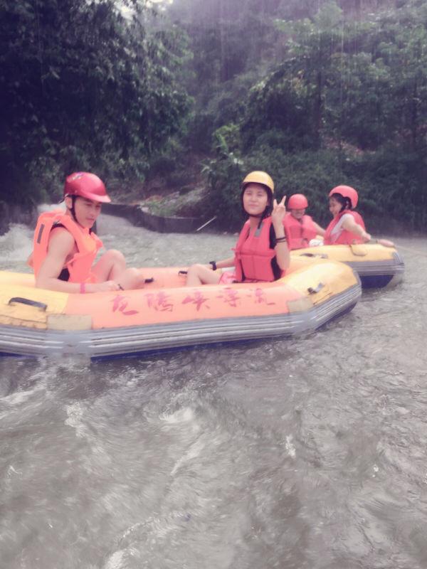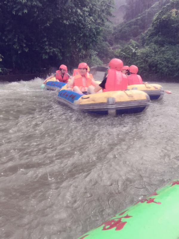 汽车蜿蜒而上,我靠窗俯视便能看到许多玩勇士漂的人群。我听不到他们欢乐的笑语,但我能看见他们愉快水战的情景。画面仿佛回到了去年的8月,我与哥哥,侄子还有朝霞,在急流而下的水道,在婉转迂回的水湾嬉戏的情景。然而这终究是去年的事情了,在上山的那一刻,好象已很久远,却仿佛又在眼前。