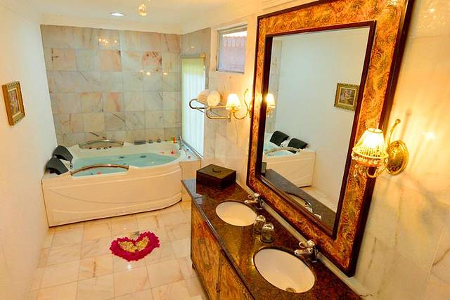 度假村的房间空间非常大,简洁温馨,入户阳台、大浴室带按摩浴缸、化妆间、衣帽间、电视、保险箱、空调、熨衣设备、吹风机、免费洗浴用品、拖鞋、咖啡设备、电烧水壶、迷你吧都有配置,床铺也很大,3成人,2大2小都没有问题。凡是在飞鱼家预定SARI度假村的情侣,只要提前预约就可享受岛上免费的蜜月安排,如:婚纱拍照,蜜月房间布置,这些都是免费的哦