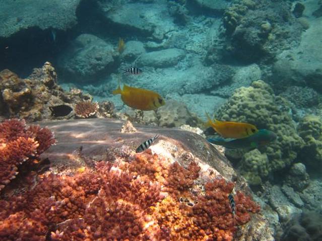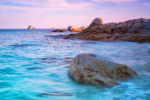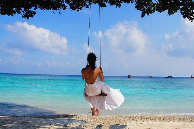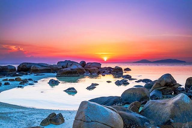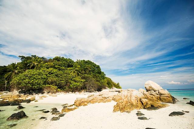 这里椰林树影、水清沙幼、海天一色。因为比热浪岛开发晚,整个岛上的环境未受到污染,海水如水晶果冻般透明诱人,走在洁白细腻的沙滩上会看到小寄居蟹缓缓爬过,还有令人探索不尽的海底世界,最具特色的蓝珊瑚,缤纷瑰丽的海藻,七彩斑斓奇形怪异的鱼群等等,都能让你深深爱上这个岛屿而无法自拔。