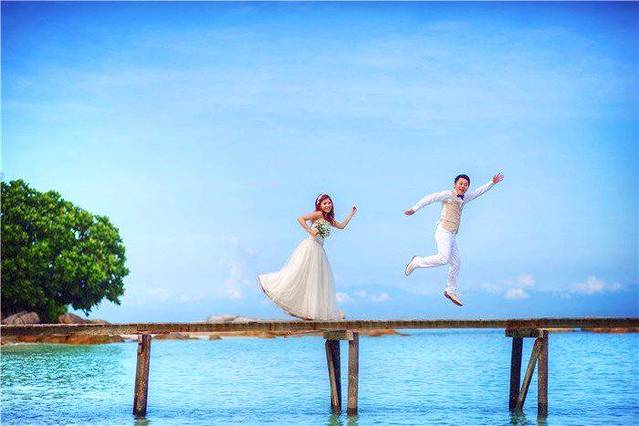 早餐都没有吃的我们迫不及待地去海边看日出!结束之后我们决定来一组唯美的海岛婚纱照,都来到这么美丽的地方不拍点美美的照片总觉得会有遗憾。