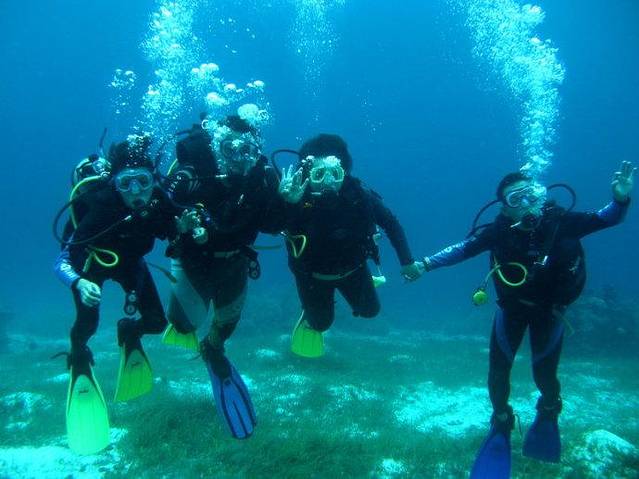 之后,我们跟随教练来到海边,进行开放水域的学习。开放水域就是到水下10米重复平静水域学习的内容,最重要的技巧就是耳压平衡和中性浮力。