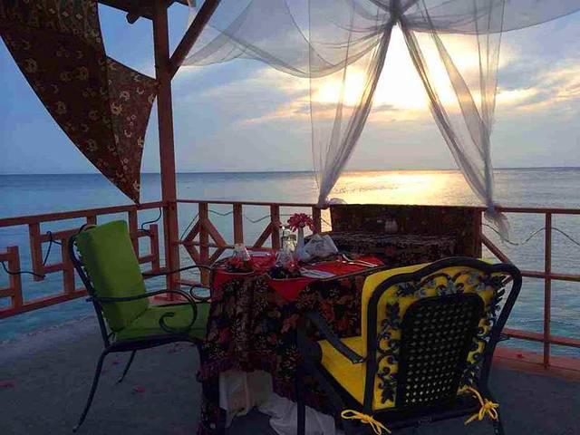 飞鱼家给我们推荐的套餐是4天3晚浪中岛考证套餐,4800元/人,包含了3晚的园景别墅住宿、提供每日三餐、机场接送,码头接送、潜水装备使用、潜水中文课程教学(事先告诉酒店入住的是情侣,还可以享受免费的婚纱拍摄、蜜月布置等服务哦!)。