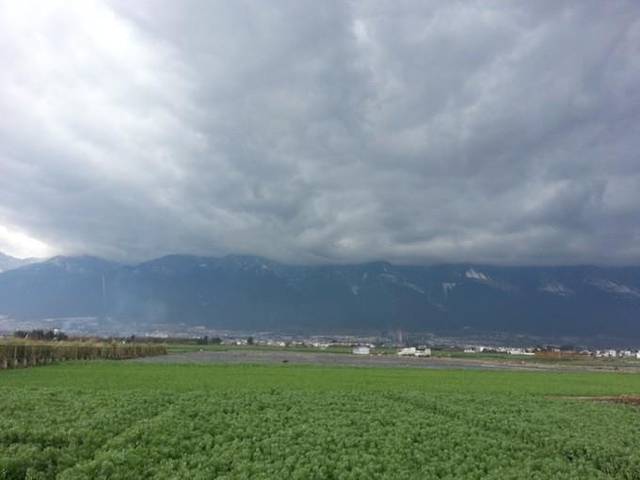 但是徒步也不是白走的,从旅游学院出发的时候天又阴了下来,还下起了小冰雹,但是我们走着走着竟然走到了阳光下,回头一看乌云密布,而我们头上却是蓝蓝的晴天。走过一片围墙,柳暗花明,来了这么多天,阴了这么多天,我们终于看到雪山了!就一个字,美!