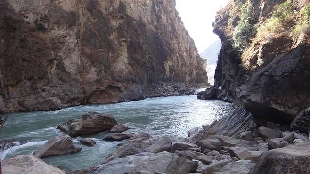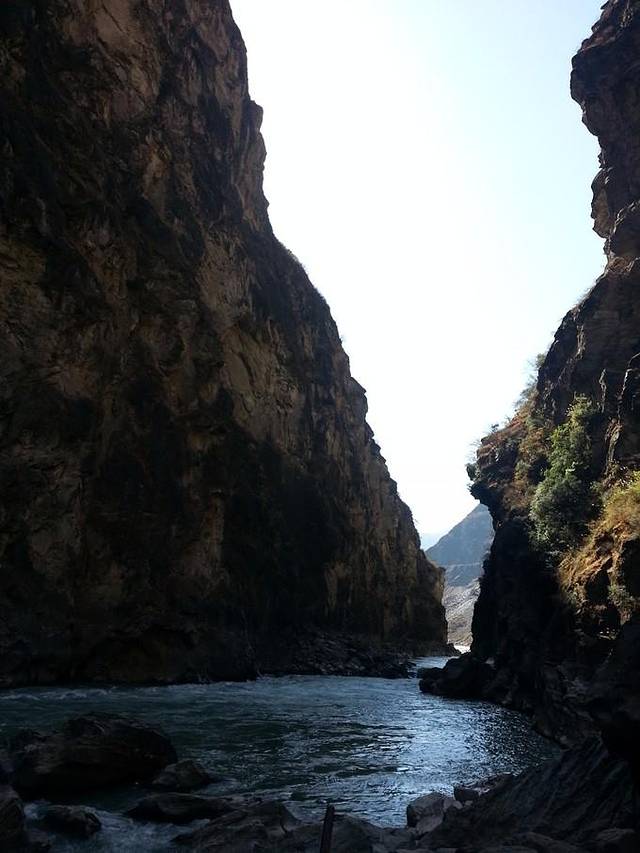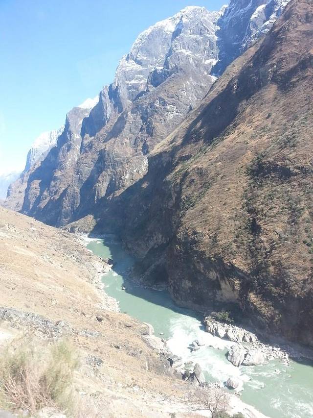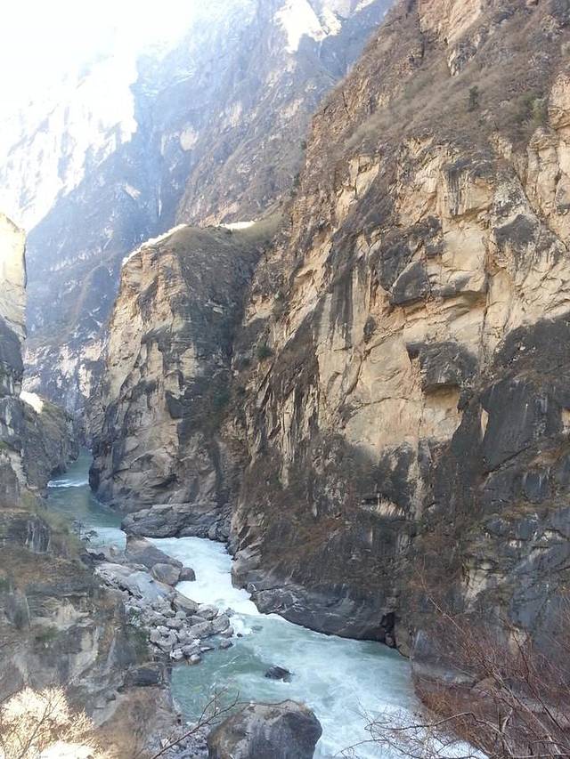 我们选择的中虎跳,徒步下山崖,全程都很陡,比较累,看着也挺吓人的。。不过山崖边上都有铁链可以借力,大家放心~据说上虎跳比较好走,而且水很猛,有大观景台,不想徒步的朋友就选择上虎跳吧~~中虎跳的话下面只有大石头。