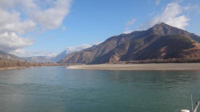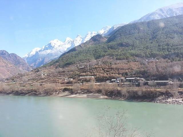 这边海拔低一点。梯田,村庄,还有开的灿烂的花。 虎跳峡之前有一个【长江第一湾】,百度图片会觉得特别震撼,180度的大转弯,而实际上我们并不是在天上飞着看的,而是在漂流,所以并看不到这么震撼的长江第一湾,这个着实有点坑,还是自费。。不过换个角度来说,江两侧的风景还是很美的~