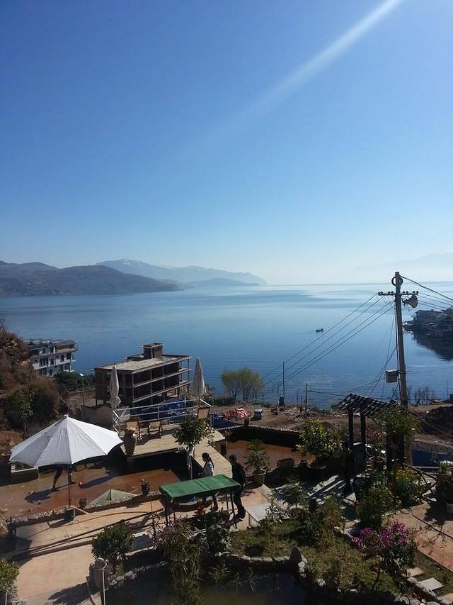 车在出了双廊高速口就把我们卸下来了,等了一会,老板如约把我们接到客栈。双廊的海景大概就是全镇的卖点,沿着洱海的客栈鳞次栉比,随便走走就不知道闯进了谁家的后院。我们的客栈在半山腰上,头顶上是高的上天的高架桥,脚底下就是洱海。