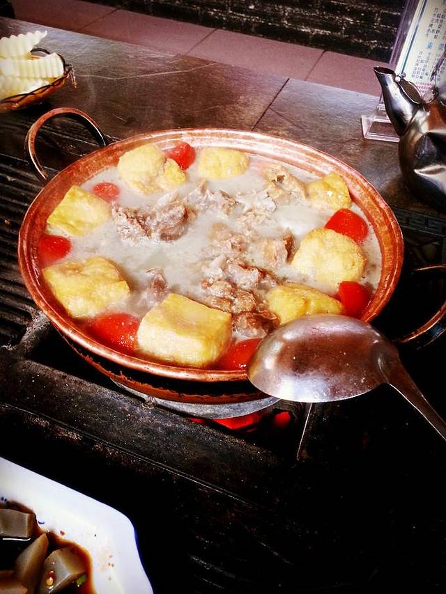 腊排骨的味道和在家吃的排骨味道还是有所不同,偏腻一些,倒也好吃,只是并不太符合我的菜。个人更喜欢纳西烤鱼,鱼皮烤的焦焦的,灰常好吃~基友把腊排骨旁边一圈豆腐泡都给吃了- -