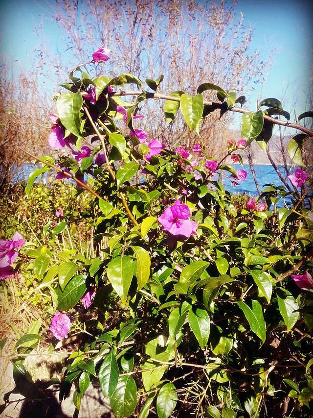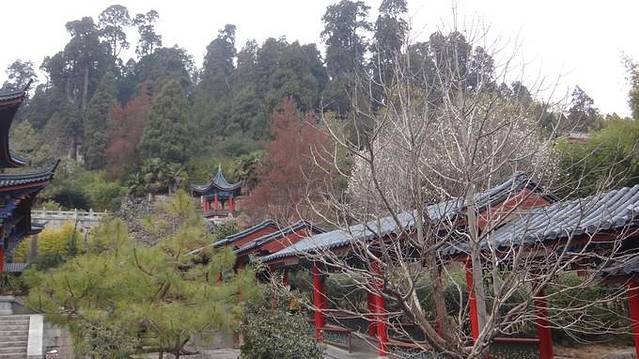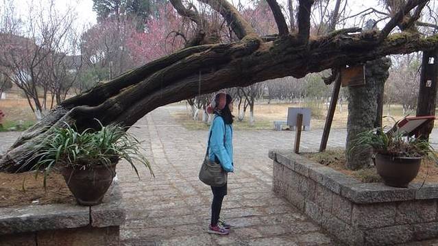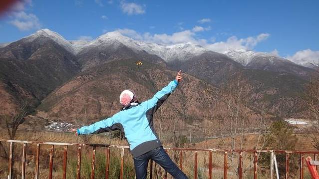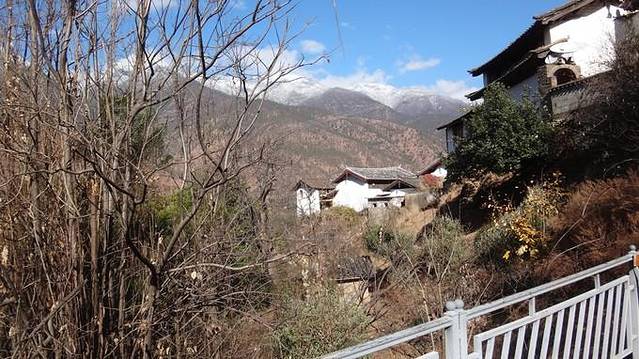 虽然是冬天,但是后花园的山上还是红红绿绿的,木兰也是开的灿烂。登上后山,又一次看到了古城的全景。相比狮子山上,这里没有咖啡店和客栈,视野开阔,连着远处乌黑黑的雪山,竟也变得可爱起来。