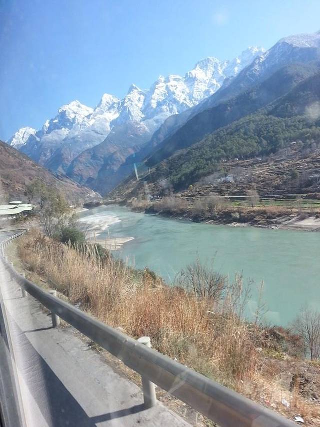 终于启程前往【虎跳峡】,地处迪庆藏族自治州。全程214国道,遥远的尽头就是拉萨。一路雪山为伴,一步一景。傍山险路,一边是山崖峭壁,一边是崖底呼啸而过的江水。小小的中巴车好像飞在两座雪山之间,一车的嚎叫与惊叹~