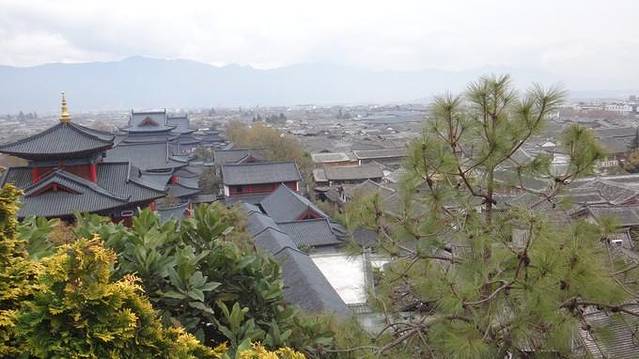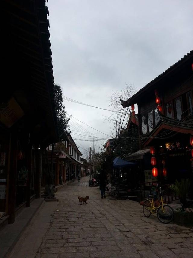 然后我们就往木府一头闲逛,出了古城。基本没什么人,跟一个大爷问了路从一个小山头上绕回了古城。沿途很静,有许多客栈。要不是第一次来,我倒更喜欢住这里,住上个十天半月,可以尽享古城的宁静安逸了。只可惜,并不知道这到底是哪TAT。。