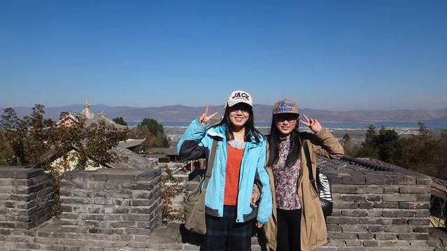 我们直接在客栈定的去双廊的车,丽江大部分客栈应该都有这个功能嗯。。中巴车在北门接我们,因为我们是最后两个人,就坐在最后一排,略挤。。瑞哥把我们送过去,相处这么多天,依依惜别瑞哥。。。丽江终于彻底摆脱了阴郁的天气,1月份的天,晴空万里,阳光直射,大西南温暖如春。