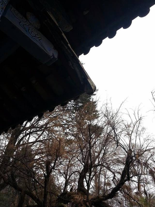 院里古树参天,几乎每一棵都有几百年的岁数,风云变幻,他们始终都在这里。一棵很大的银杏,400多年,这个季节当然一片枯黄,如果它长满金黄色的叶子,啊想想就觉得美得不行。