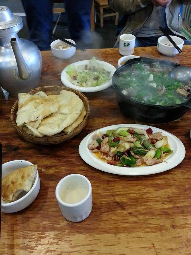 比较正宗的纳西炒菜,边吃饭还可以边烤火,纳西粑粑+腊排骨+小炒肉+酥油茶+包心菜,经济又实惠,棒棒哒~老板都是当地的阿姨,笑起来灰常亲切~