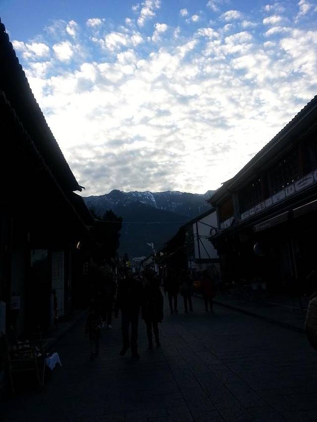 到了古城北门,给客栈管家打电话来接我们,感觉真是超不好意思,人家还在睡觉愣是几个电话被我喊醒。。管家来把我们的行李神马的都拎去了客栈,我们去客栈转了一圈,又去瑞哥的客栈转了一圈,出来已经7点多了,古城的天还是没有亮。。有点饿了,我们就随便在路边找了一家好不容易开了的小店,吃了点抄手和小笼包,就又回到我们客栈去耍。客栈里有一个玻璃观景房,能远远的看到雪山。