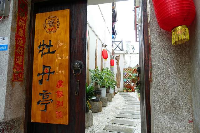 半个小时后,到了我们的客栈,牡丹亭一号院,客栈在古城,车不能开进去,所以自己走了一段,司机还帮我们拎行李。好在客栈就在人民路,从路口走下去也不是很远。