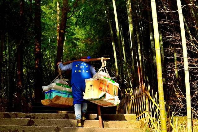 之所以山上的物价很贵,看到辛勤的挑山工就有所知,我们在山顶享用的都是他们一担担挑到山顶去的。