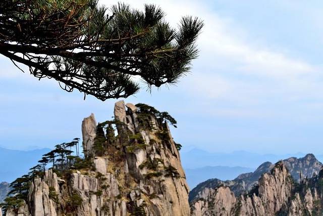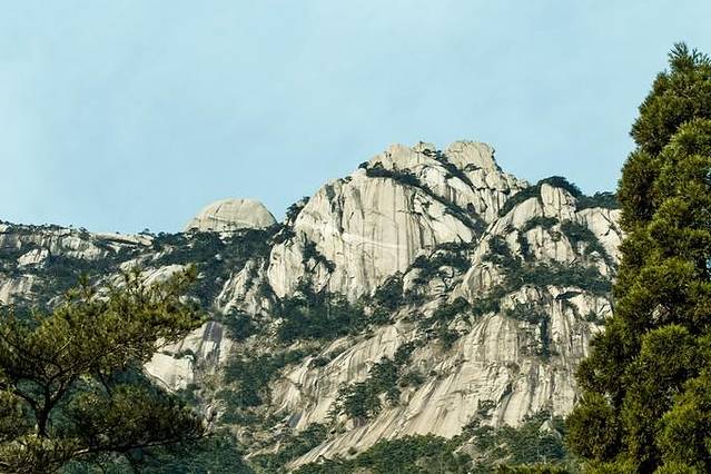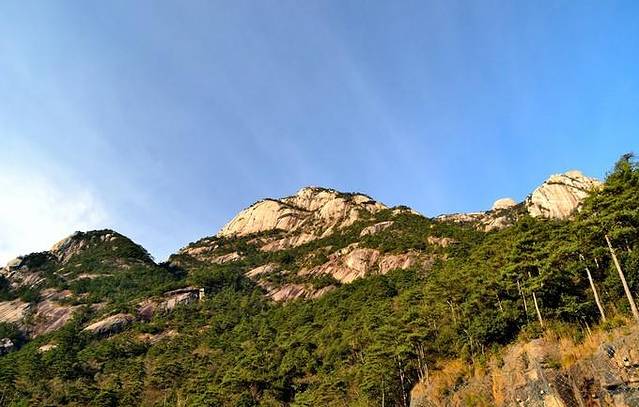 早餐过后徒步前往南门换乘中心,在路上已经可以看到黄山的奇峰秀色