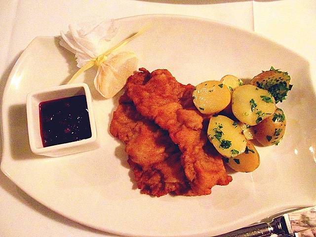 维也纳炸小牛肉 Wiener Schnitzel,正宗的Wiener Schnitzel必须是牛肉,而且一定要是小牛肉炸成的肉片才能叫做Wiener Schnitzel,而用猪肉代替的,则只可以叫Wiener Schnitzel Art维也纳式炸猪扒。在所有不同种类的Schnitzel之中,以小牛肉的最正宗而且最贵,是因为小牛肉肉味稍为寡淡但口感更软嫩,成年的牛肉则容易干或太老,不适合用来炸食。