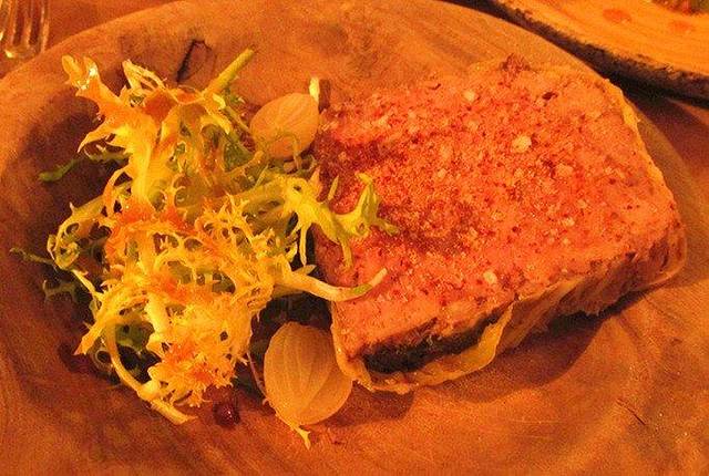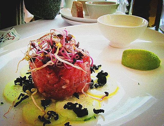 我们的前菜,很时尚吧,是不是猜不出来是什么!就吞拿鱼的Tartar,配上Wasabi酱。好有创意,味道也不错。