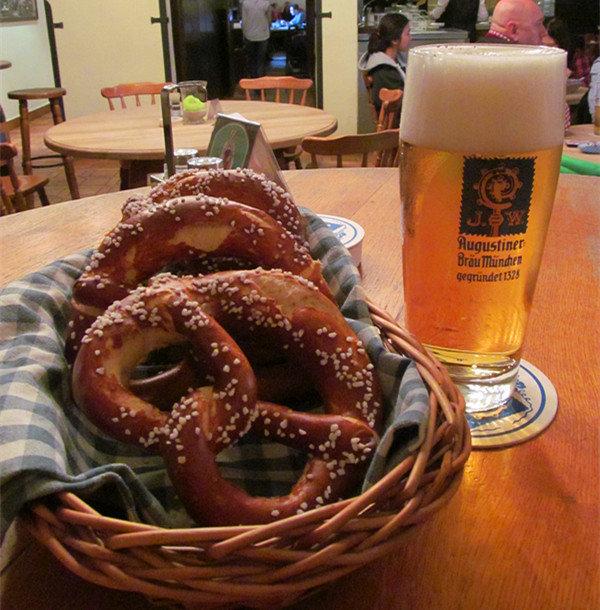 啤酒面包和Augustiner的鲜啤,很有啤酒的味道。这里的酒最小都是0.5L的。不像科隆都是200ml一杯。