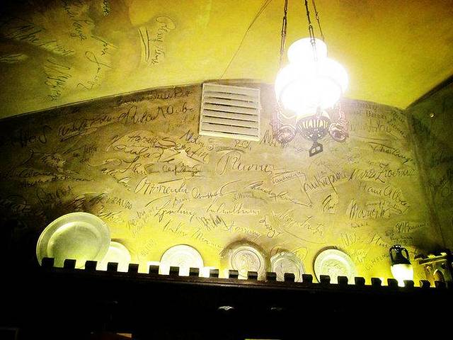 这个餐厅有个房间,里面有着历来拜访餐厅名人的签名,有约翰斯特劳斯,帕瓦罗蒂等。我文化水平有限,认不出几个。不过大家可以让侍应介绍,随手塞点小费好了。