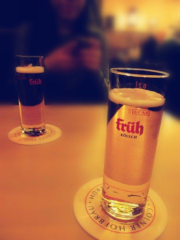 科隆啤酒Kölsch以麦香著名,一口喝下去,好鲜又有很浓的麦香,好像在东北饺子馆里的麦茶。在科隆喝啤酒,酒杯下面都有一个杯垫,每喝完一杯,侍应都会给你换上新的一杯,并在下面画一笔,假如你不想他帮你加酒,那么请喝剩一些在杯子里,或者把杯垫盖在杯口。要不是他就会很自动帮你加酒。当然,喝一杯怎么够火候,每一杯才200ml,而且是直接从木桶里出来的鲜啤。