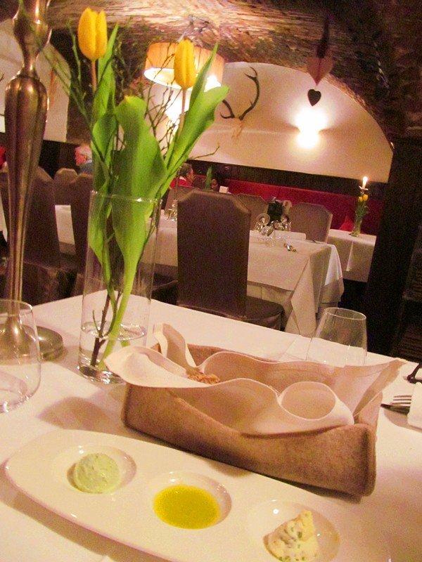 我人生第一次进入米其林餐厅是在东欧布拉格——Restaurace Mlýnec,我就是随意闯入的。因为没有订位,所以一开饭就跑进去了,因为只有两个人,所以有座位。但是因为去得太早,整个餐厅的侍应都围着我们转,而且又是第一次进入这些高级餐厅,所以不敢照照片,到了最后,人多了,才拍的照XD
