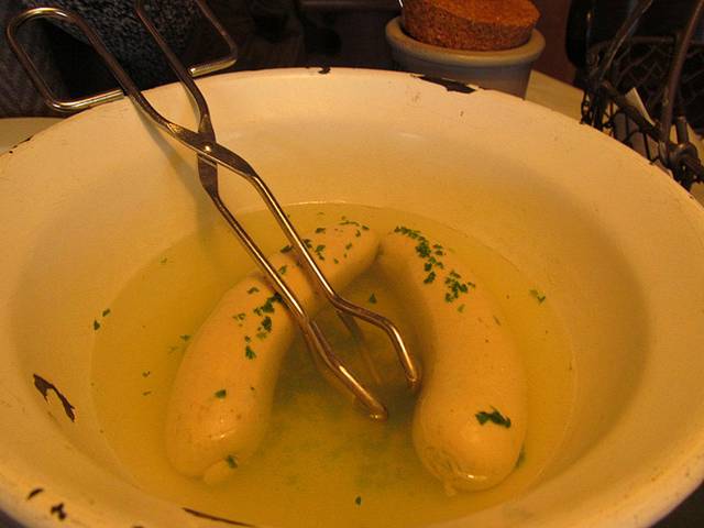 传统早餐——慕尼黑白肠(2.2欧/条),配上自家的芥末甜酱,一级棒,他家的甜酱加了薄荷,使得白肠吃上去不腻。