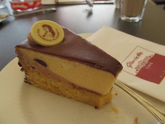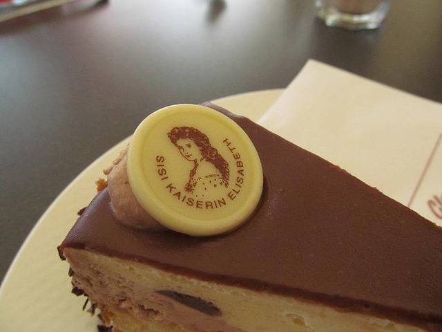 美泉宫的坡上的咖啡厅品尝了Sisi Torter(茜茜公主蛋糕),坐在这里喝下午茶,真的有种感觉自己就是当年茜茜公主……的丫鬟XD 不好意思,吃了一口才记得拍照片。