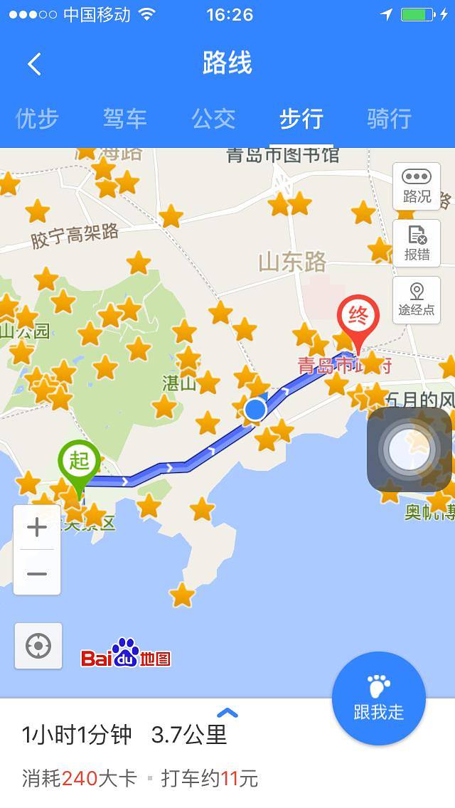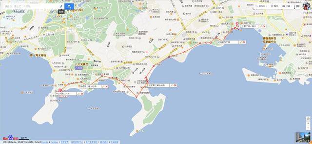 这次的路线图就是沿着青岛海边从五四广场——音乐广场——第三海水浴场——第二海水浴场——八大关景区