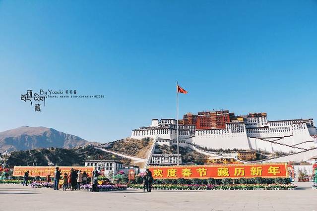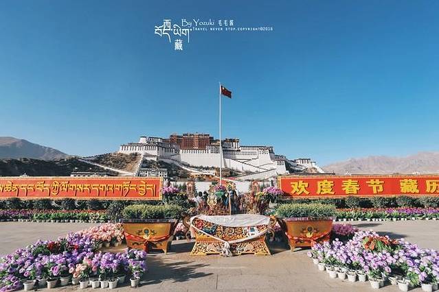 拉萨的藏历新年还是很有气氛的,八廓街一带会涌现许多藏民,而布宫前的广场挂满了红色灯笼,长长的欢度春节横幅也挂了起来,洋溢着喜庆的氛围,希望这样的年味可以一直保持下去。