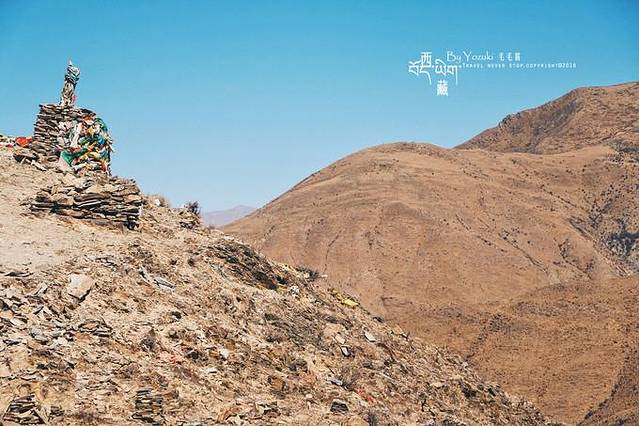 这条路也是通往机场的路,但一路同行的车子并不多,偶尔会有一两辆自驾车驶过,小小的车顶上绑了各种行李和工具,很敬佩那些毅然决然自驾来西藏的人,体力和内心都必须是无比强大的。