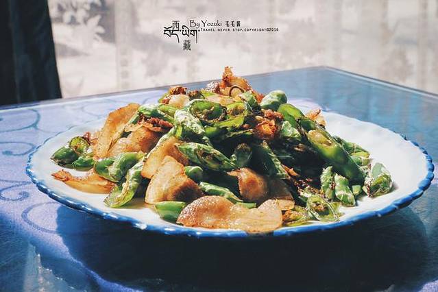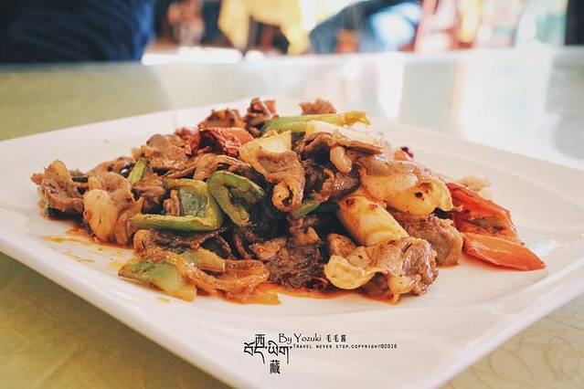 新年期间几乎80%以上的餐厅都不开门,好在酒店附近有一家小小川菜馆还开着,环境比较简陋,不过靠门的位置晒得到太阳,阳光暖洋洋的洒进来,还挺舒服的。点了一些小炒肉、焖茄子的家常菜,我们几个狼吞虎咽的几乎都吃干净了,作为来西藏的第一餐,表示味道还不错,之后的第二晚仍然在这家解决了。