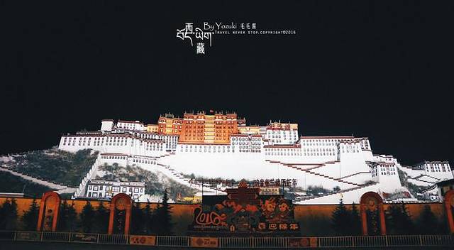 吃好晚饭在布达拉宫广场信步,夜晚的布宫在灯光的照射下非常好看,和白天一样有气势,在白天有问一司机,布宫几点熄灯呢,司机回答说不熄灯呀,我们想那就慢慢散步吧,谁知道不到一刻钟,布宫的灯全暗了,大概10:30的样子。这时候抬头,发现能看见星星点点的星空。