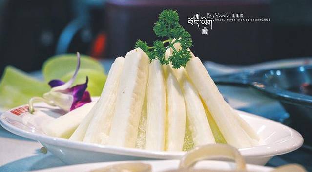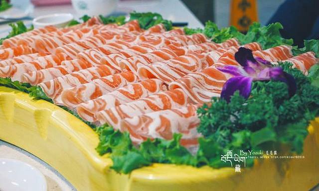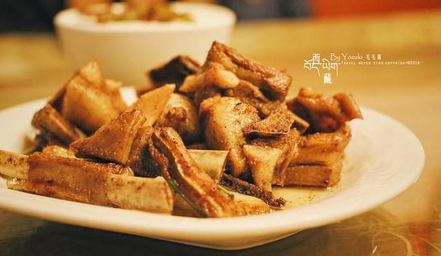 回到拉萨市区后,必须好好吃顿饭,还没有吃过西藏特色的馆子。找到一家当地评价不错的藏家宴,有2层楼,挺有藏族风情的,人气很旺。羊排是必点的,端上来就觉得好香啊。酸萝卜炒牛肉也是必点的,吃起来很爽口,正好解一解羊排的油腻。
